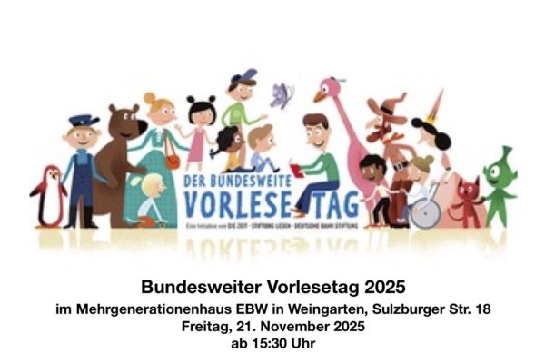 Am Freitag, 21.11. lädt das Mehrgenerationenhaus EBW, Sulzburger Str. 2, gemeinsam mit der Freiburger Bürgerstiftung zum bundesweiten Vorlesetag ein. Ab 15:30 Uhr gibt es ein…